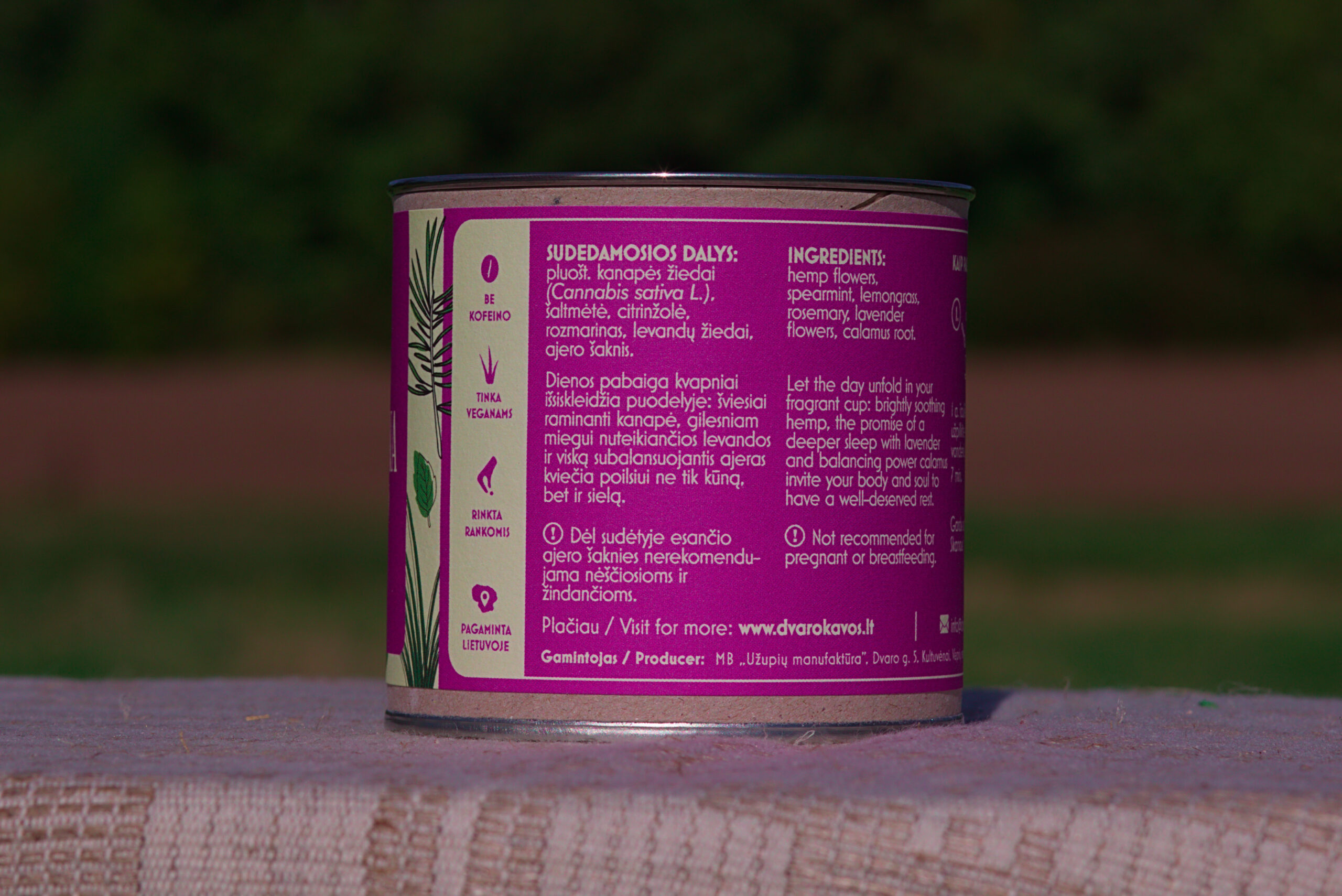 Sudėtis: kanapių žiedai, šaltmėtė, citrinžolė, rozmarinas, levandų žiedai, ajero šaknis.