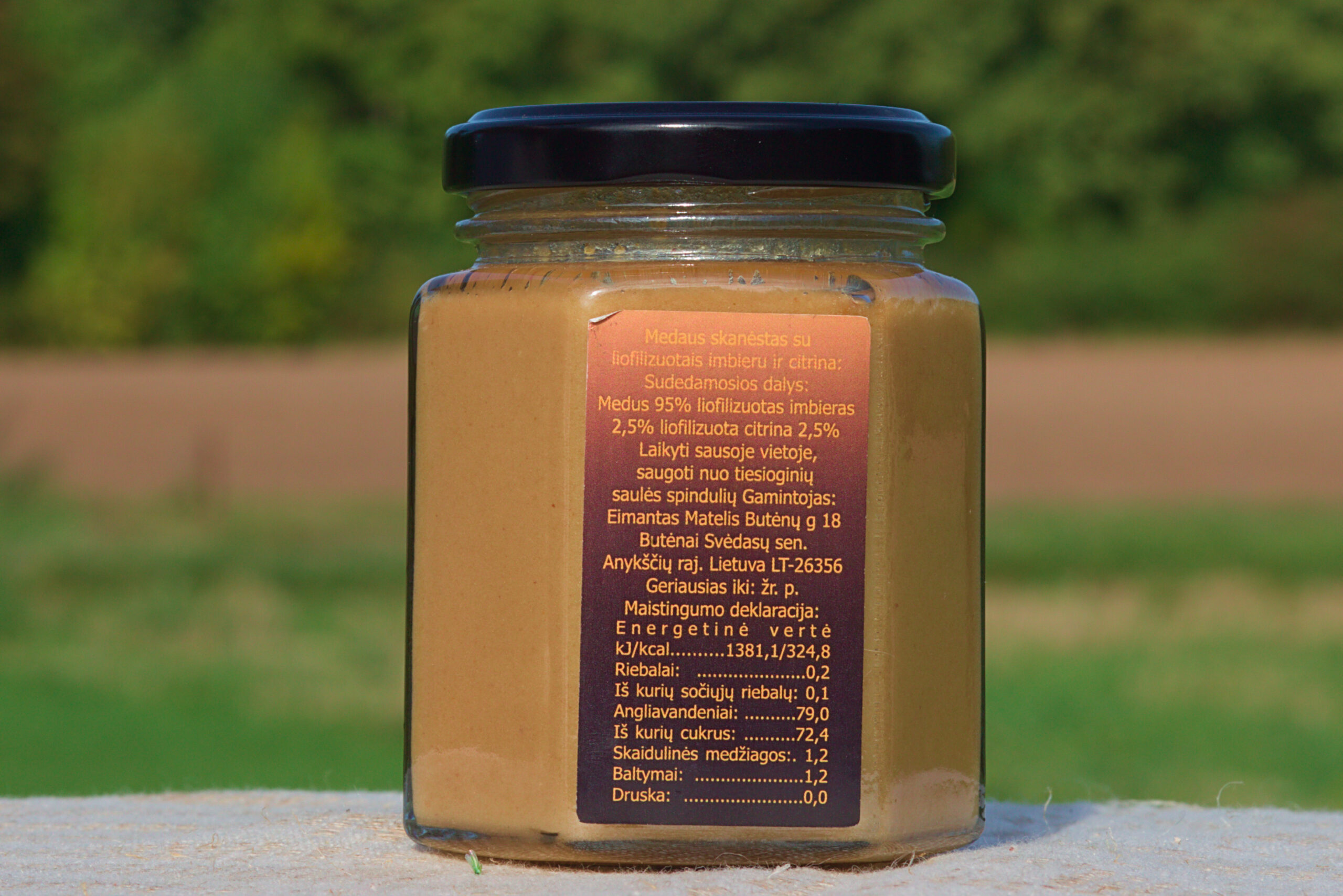 Sudėtis: medus (95%), liofilizuotas imbieras (2,5%), liofilizuota citrina (2,5%).